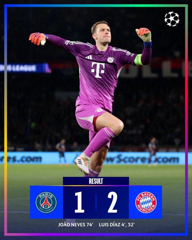 巴黎圣日耳曼1-2拜仁慕尼黑