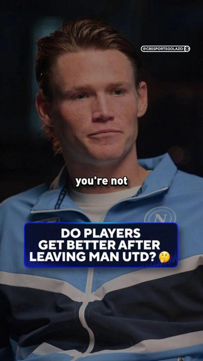 麦克托米内也解释了许多球员离开曼联后表现更好的原因:「说离开曼联后现在发展得很好,这未免太容易成为借口了。我最后一年表现也不错,进了10球,我们还赢得了一座奖杯。在曼联受到的关注更大,所以情况看起来会糟糕得多。我认为,球员离开后,能更多踢比赛,自信心增强,自己的感觉更好,而在曼联时上场可能太少了。在曼联,你不得不努力争取出场,因为有布鲁诺·费尔南德斯,他表现非常出色。所以我认为都说是曼联有问题,可能太草率。」