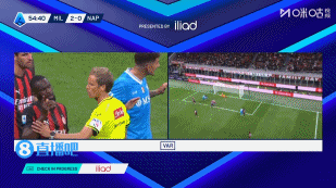 直播吧09月29日讯 米兰vs那不勒斯第57分钟,埃斯图皮尼安送点,德布劳内主罚破门,此时比分变为米兰2-1那不勒斯,米兰十人作战!