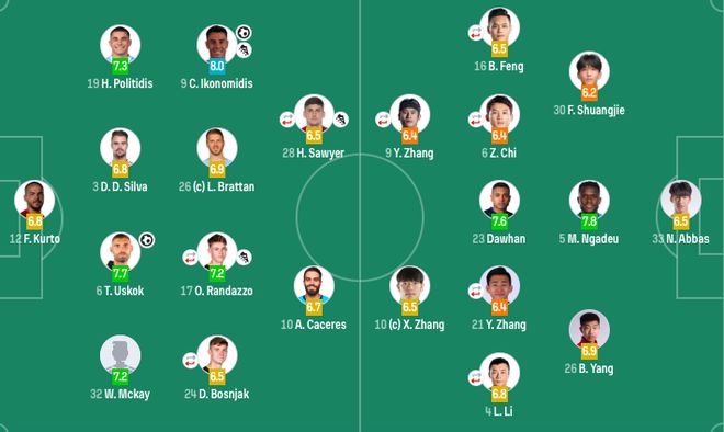 后卫:4-李磊(66'37-曹永竞)、5-恩加德乌(F)、26-柏杨、30-范双杰、16-冯博轩(66'11-林良铭)