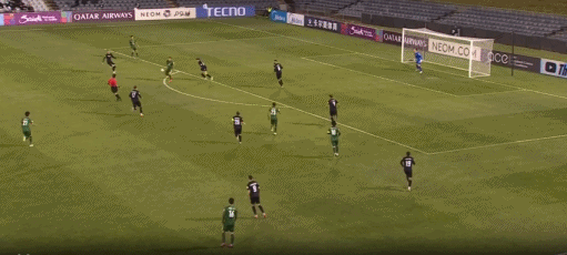 第23分钟,李磊前插获良机,停球打门过正被没收。